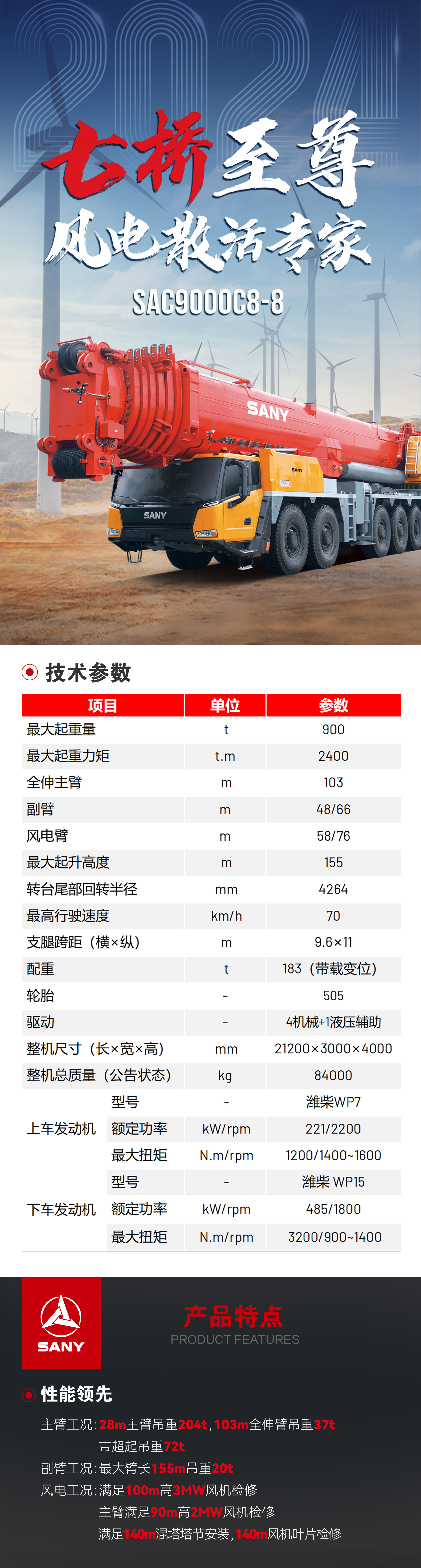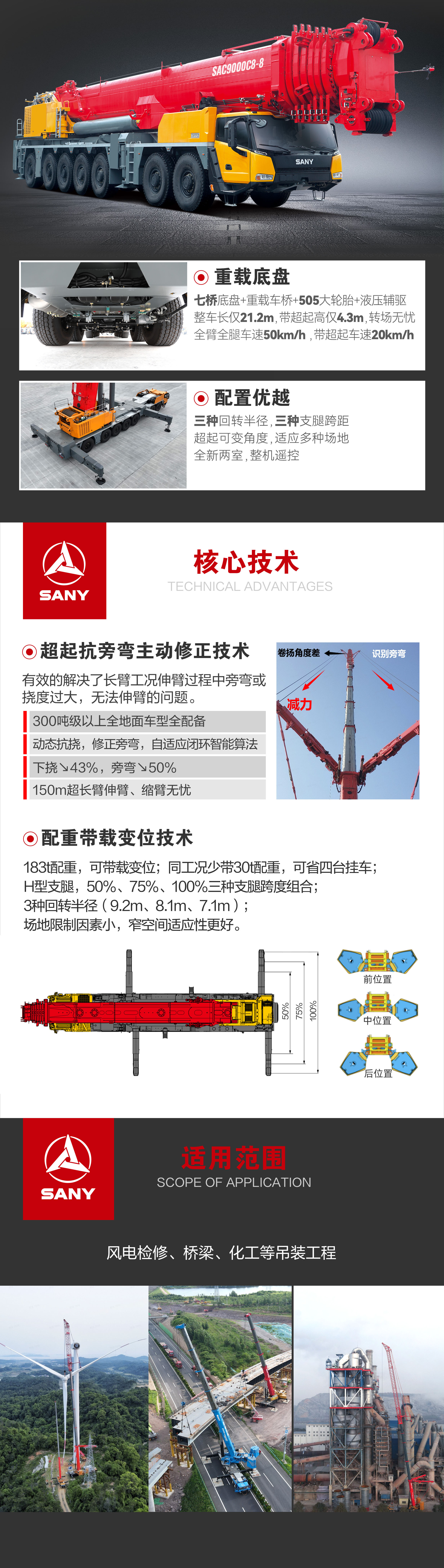 风電(dian)工(gong)况:满足100m高(gao)3MW风機(jī)檢(jian)修,主(zhu)臂满足90m高(gao)2MW风機(jī)檢(jian)修