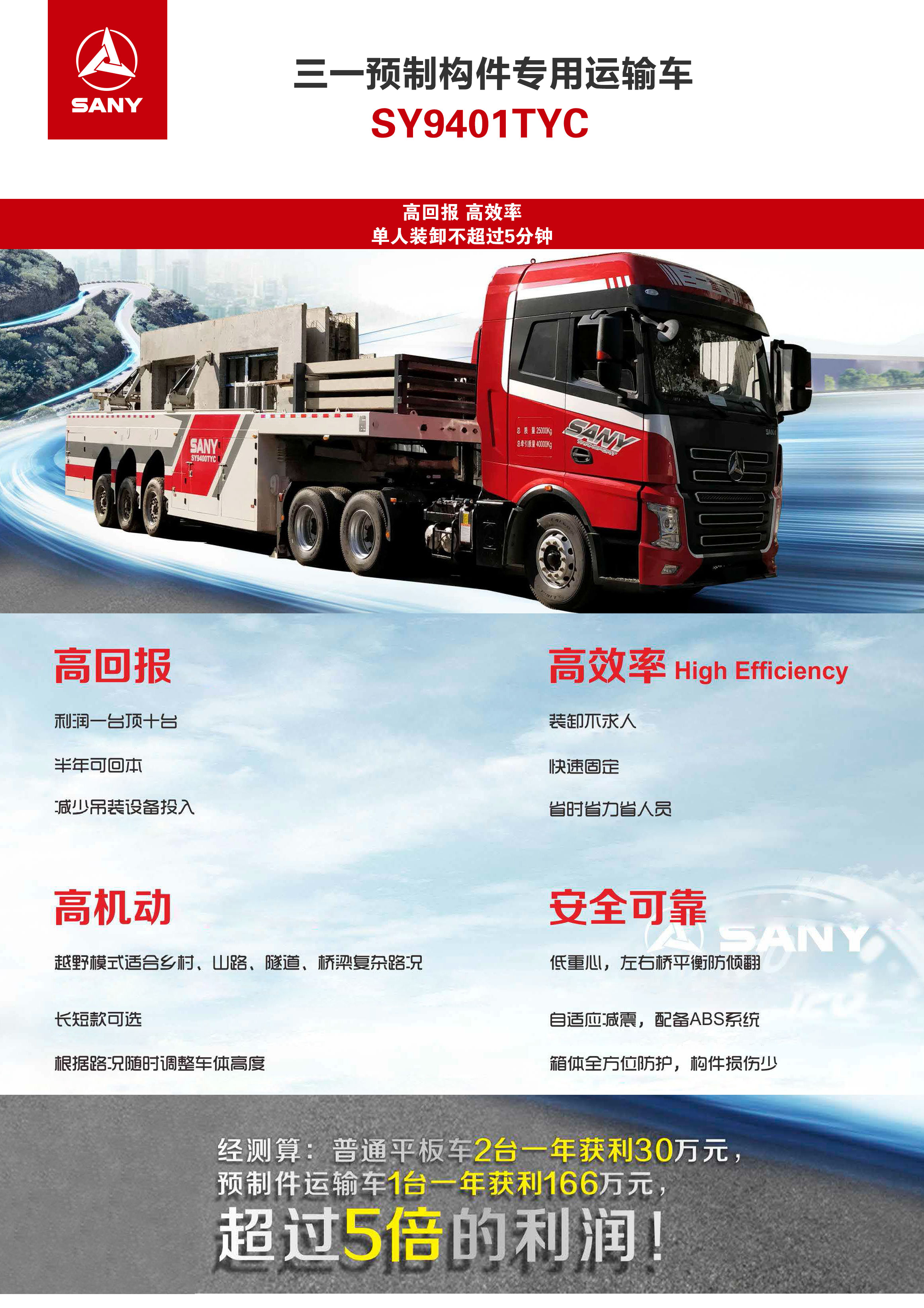 市(shi)政公(gōng)用(yong) SY9401TYC三一(yi)预製(zhi)件專(zhuan)用(yong)运輸(shu)車(che)