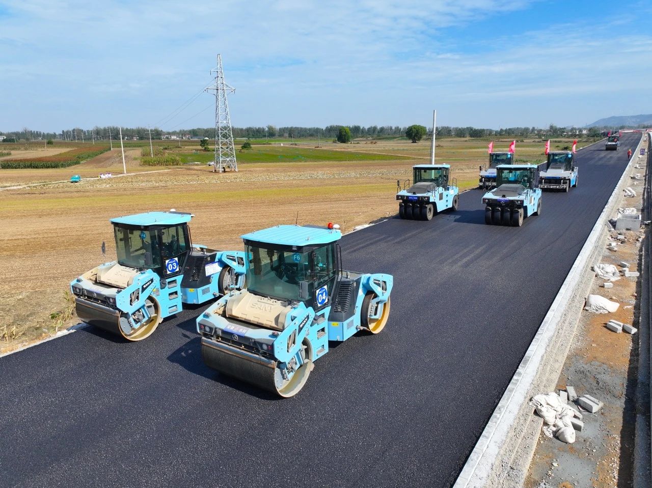 无人(ren)機(jī)群施工(gong)案例 |三一(yi)无人(ren)摊压機(jī)群在(zai)徐淮阜高(gao)速(su)02标段全面应用(yong)