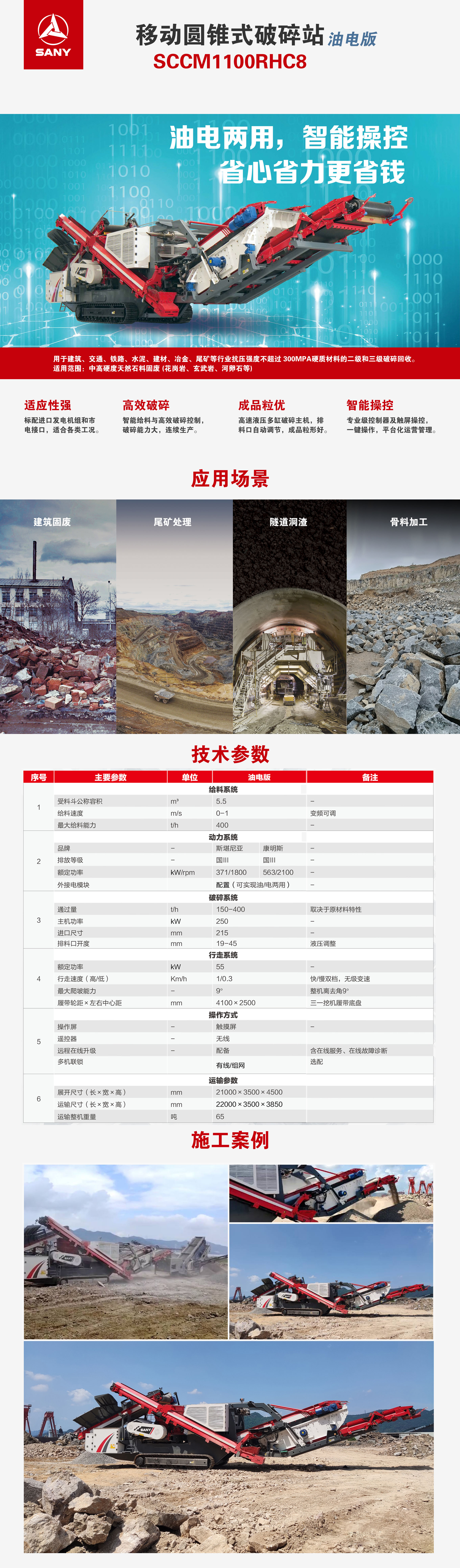 SCCM1100RHC8三一(yi)移動(dòng)圆锥式(shi)破碎站(油電(dian)版)
