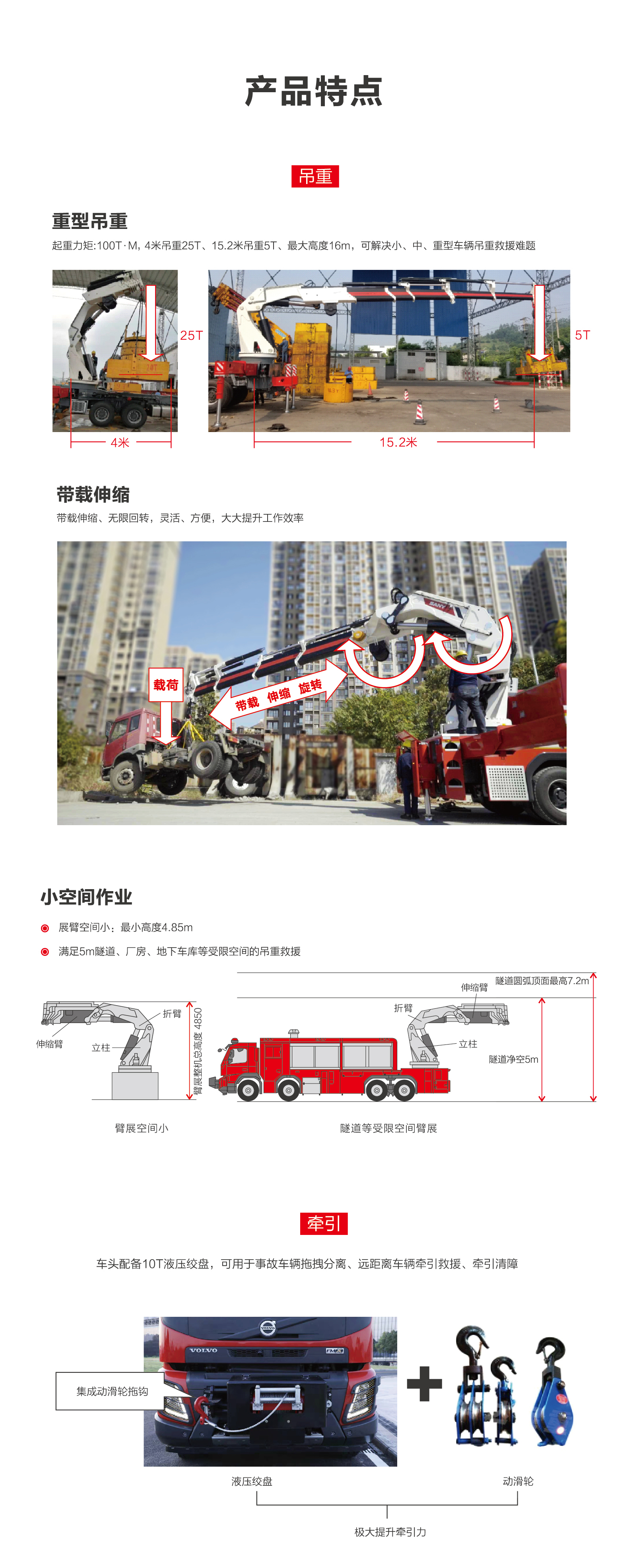 起重(zhong)力(li)矩:100T·M,4米吊重(zhong)25T、15.2米吊重(zhong)5T、最大(da)高(gao)度16m,可(kě)解决小(xiǎo)、中(zhong)、重(zhong)型車(che)辆吊重(zhong)救援难题
