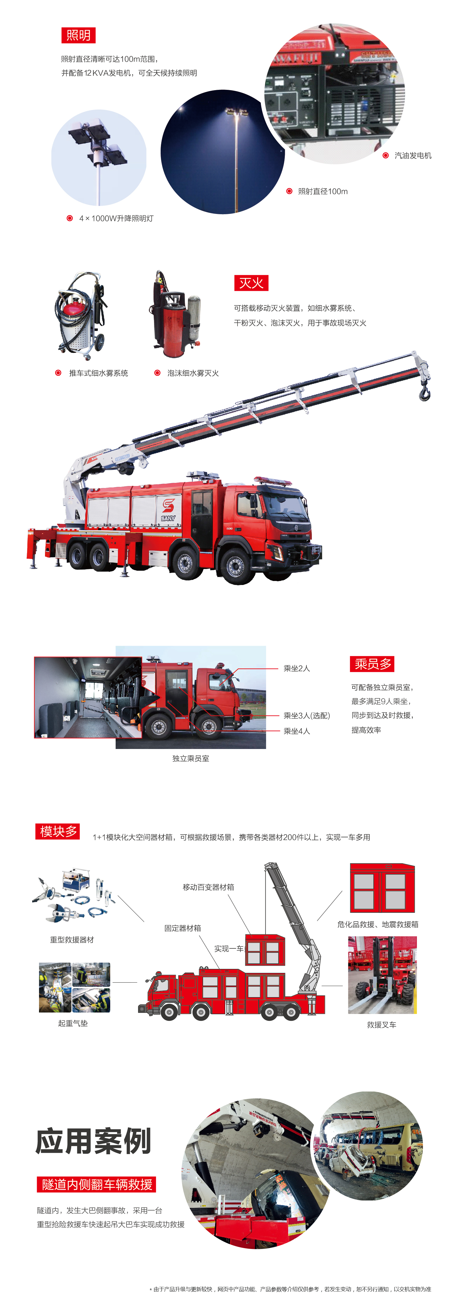 三一(yi)SQ1000重(zhong)型抢险救援消防車(che),集(ji)重(zhong)型吊重(zhong)、牵引、髮(fa)電(dian)、照明以(yi)及(ji)移動(dòng)模块化器(qi)材(cai)箱等(deng)功能(néng)于(yu)一(yi)身的(de)多(duo)功能(néng)重(zhong)型抢险救援車(che)。主(zhu)要应用(yong)于(yu)隧道低矮空间救援、高(gao)速(su)公(gōng)路救援、桥梁事故救援等(deng);采用(yong)移動(dòng)模块化器(qi)材(cai)箱,可(kě)根据事故类型配(pei)備(bei)地震救援器(qi)材(cai)箱、水域(yu)救援器(qi)材(cai)箱、危化品(pin)救援器(qi)材(cai)箱,仅需一(yi)箇(ge)底盘即可(kě)搭载不同救援器(qi)材(cai)箱,实現(xian)一(yi)車(che)多(duo)用(yong)。